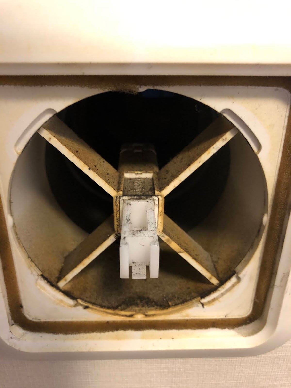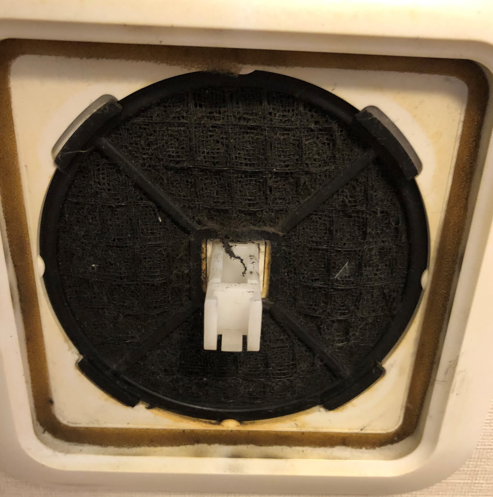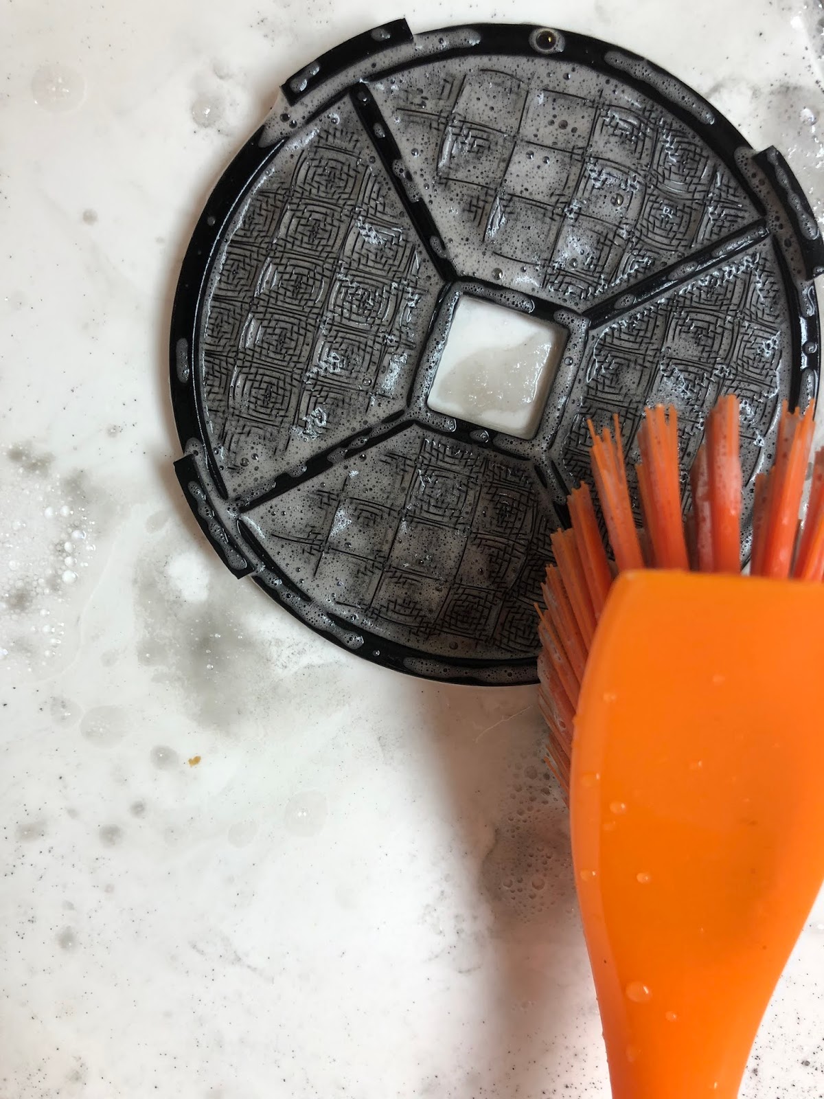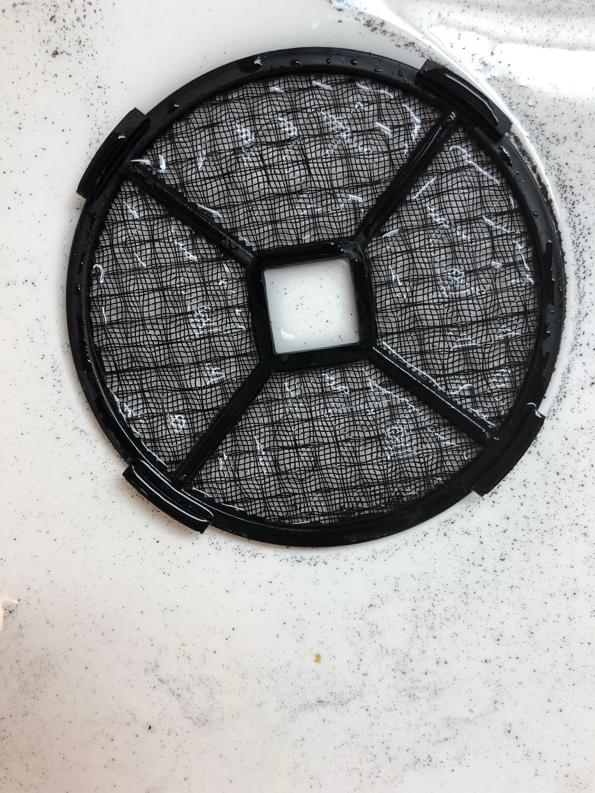 フィルターを外してみると、黒いのはホコリというより細かい「すす」のようなものに見えたので洗面台に持ってきました。